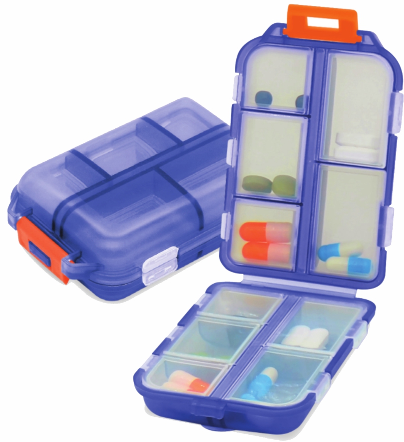 • 10 Individual Compartments: Includes 4 large and 6 small compartments to sort medications, vitamins, or supplements with ease, • Secure Sealing: Snap-tight clasps keep pills stored safely and prevent spills, moisture, and dust from getting in the compartments. • User-Friendly Design: Easy to open and close, designed for everyday convenience • Pocket-Sized & Portable: Compact and lightweight—perfect for travel, work, or everyday home use. • Durable & Safe Material: Made from high-quality, EPA-free PP for long-lasting, daily use